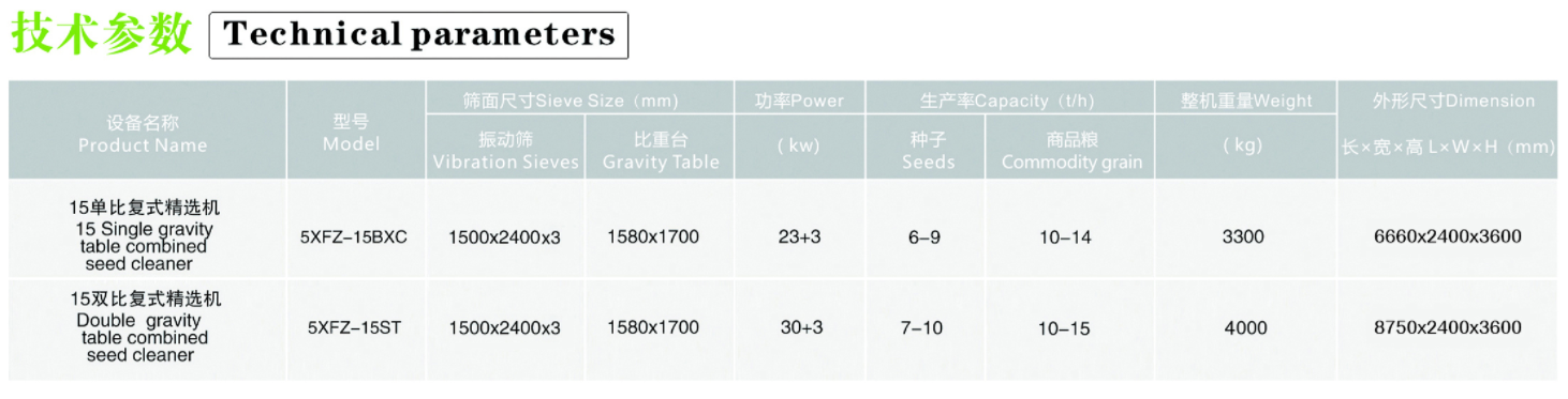 该机单次加工即可去除:糠壳、粉尘、秋籽、霉变粒、大杂、小杂等,并可将成品分级管理